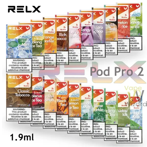 可适用于四代、五代、六代、RELX Infinity、RELX Artisan和RELX Essential Device烟杆。含量尼古丁3%和5%。